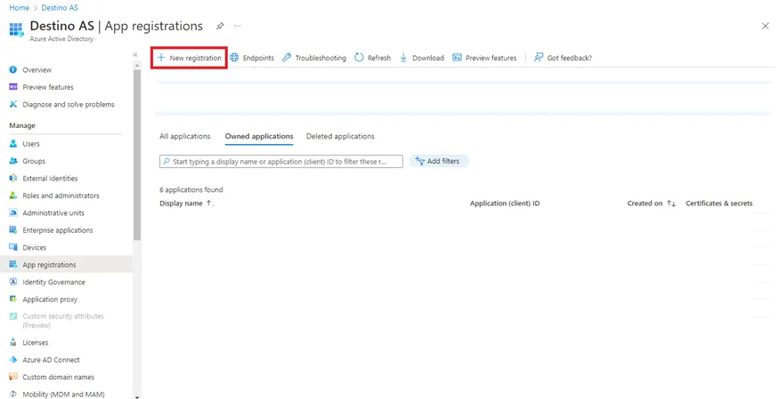 First an Azure app registration is needed to gain API access to the SharePoint data. This is done in the Azure Portal and require an Administrator to set up.